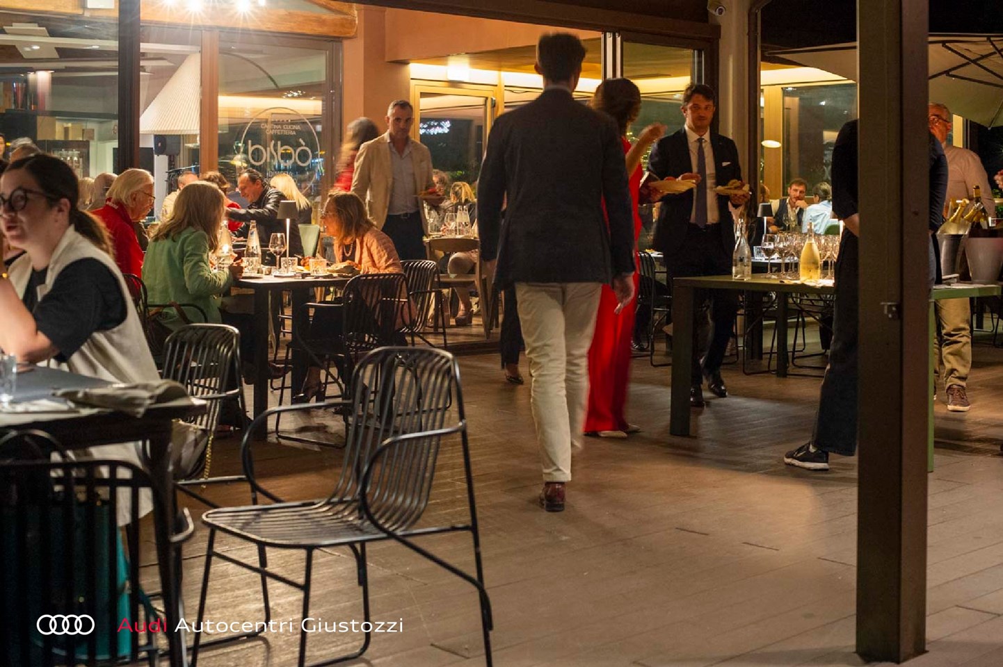 L'evento è proseguito alle 20:00 con un apericena presso il Bisbò, dove gli ospiti hanno potuto degustare piatti raffinati e al contempo scoprire le novità Audi SQ6 ed e-tron GT RS, modelli che rappresentano ulteriori punte di eccellenza nella gamma Audi.